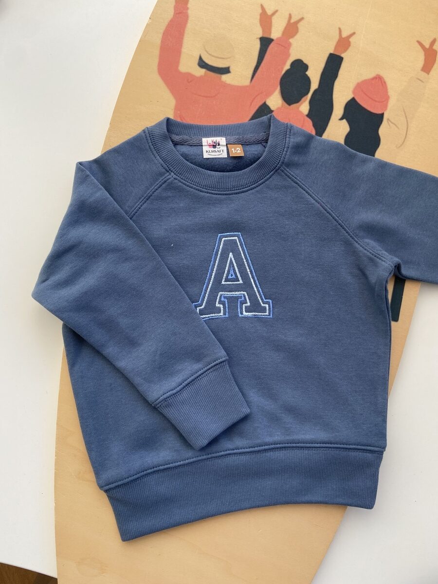 Sudadera de niño personalizada con su inicial. Elige el color de los hilos del borde.